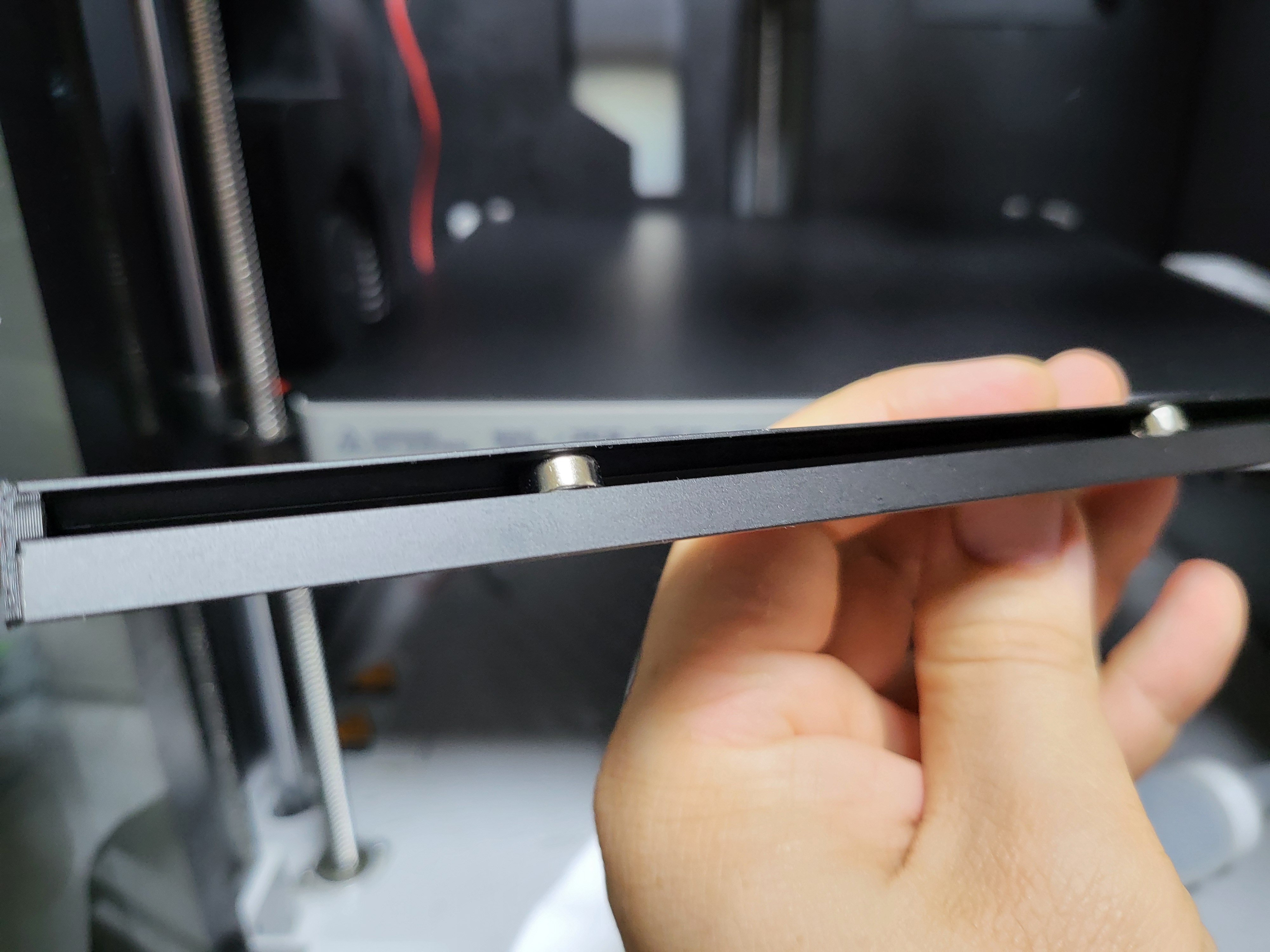 알루미늄 프레임에 자석이 들어있어서 프린터의 전면 상부에 그대로 붙습니다.