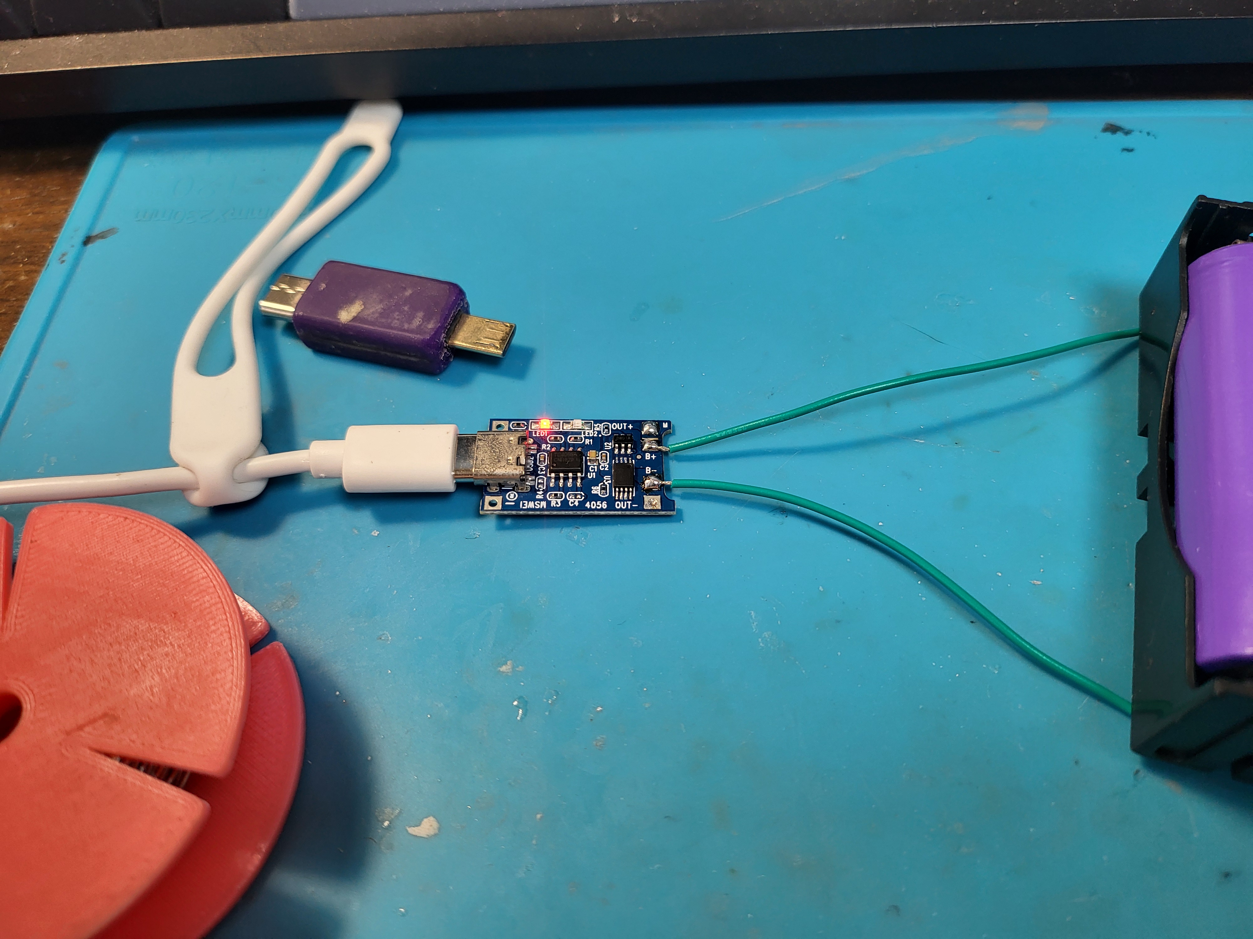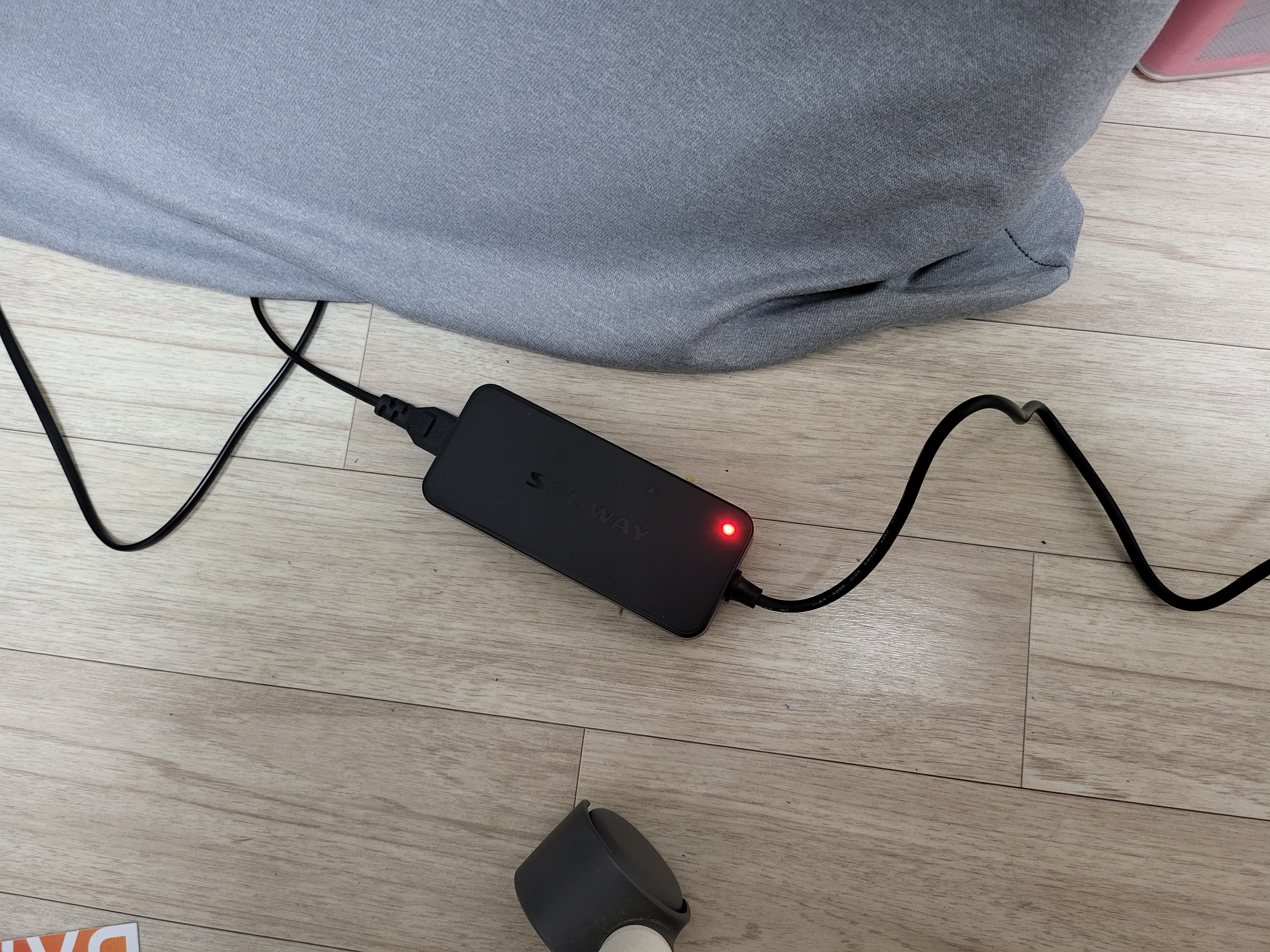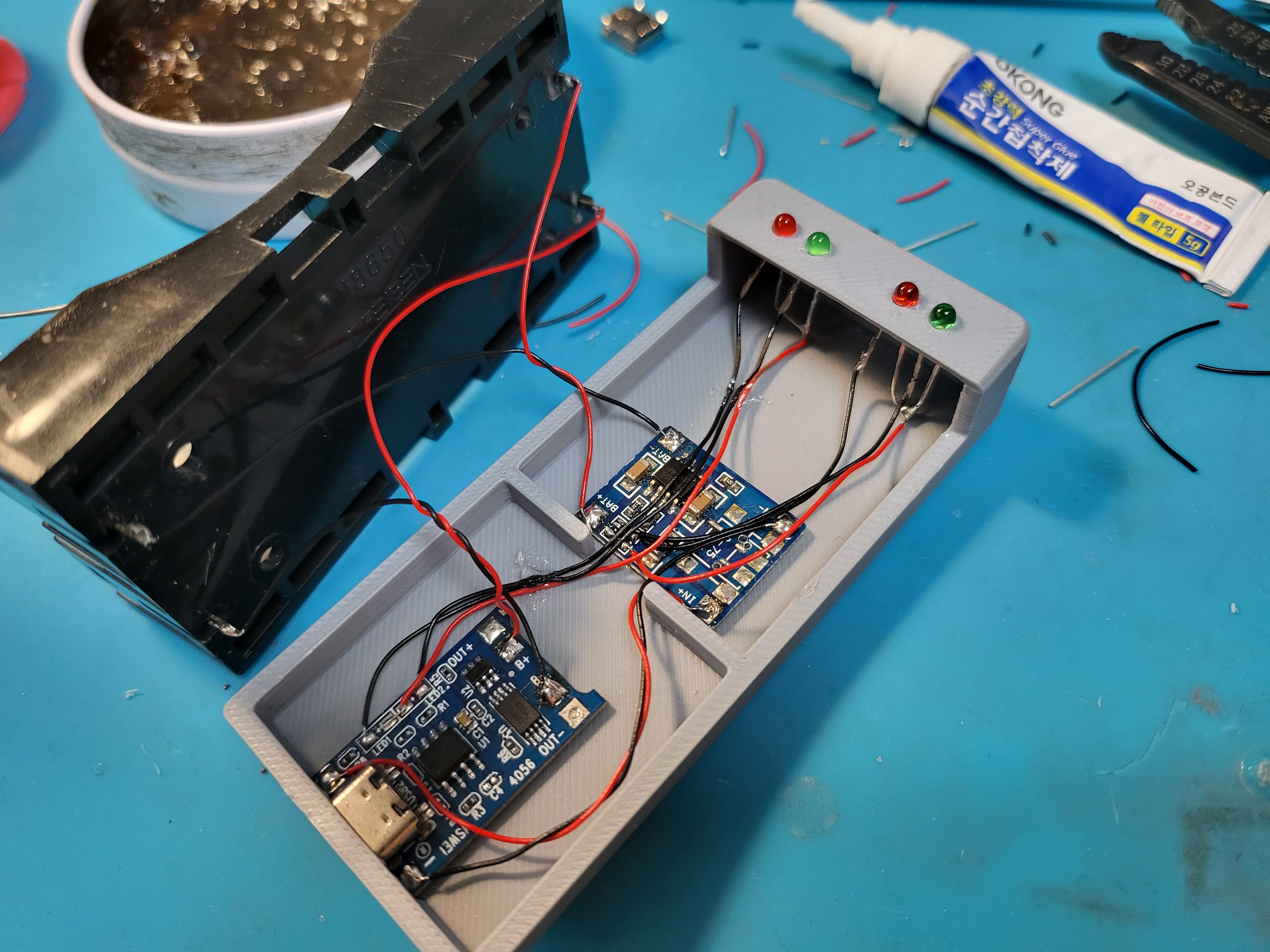 보조 배터리의 충전구에 충전기를 꽂으면 충전이 되는 것을 볼 수 있습니다. 4~50% 정도 충전후 펌업을 하려 합니다.