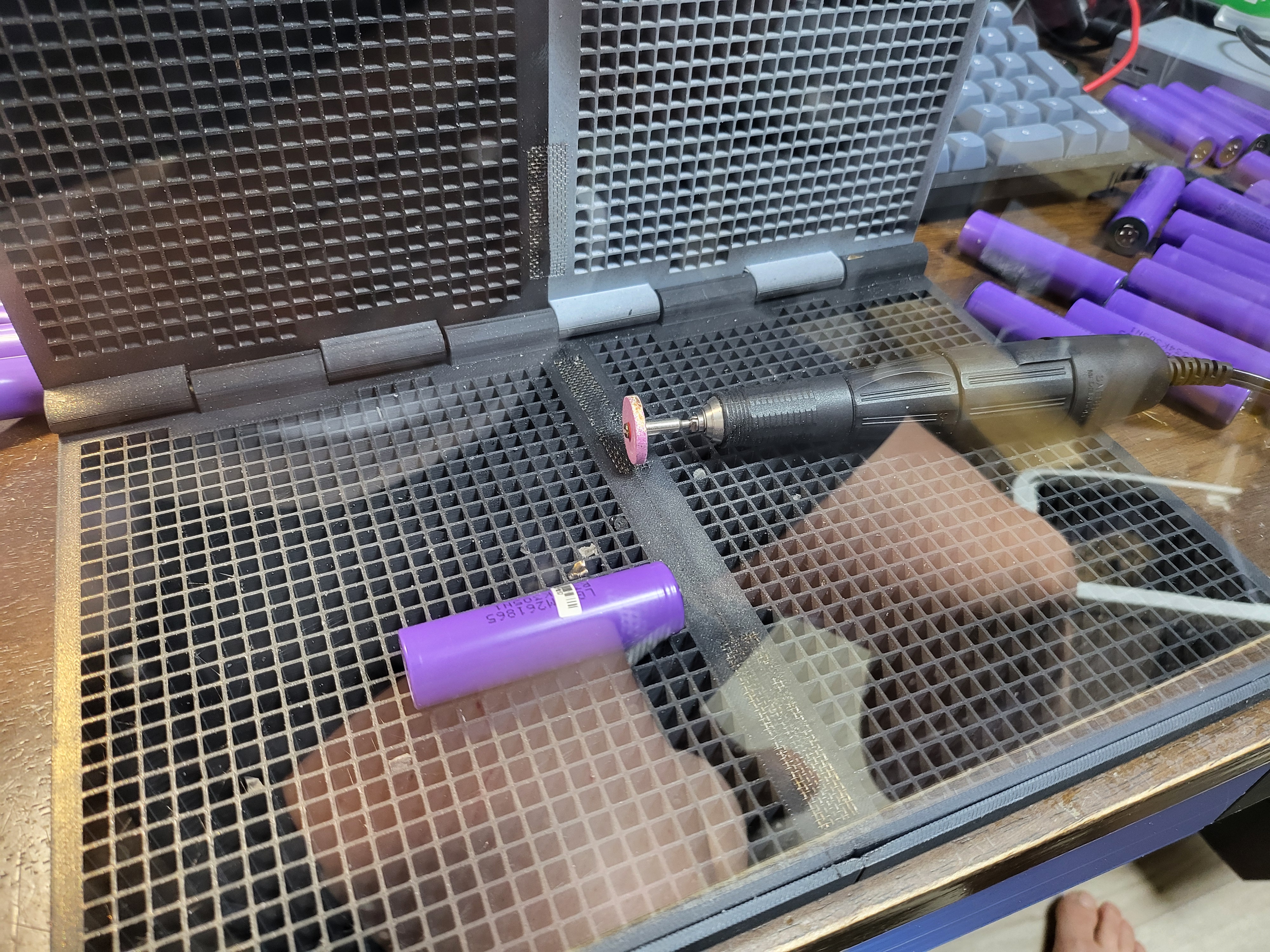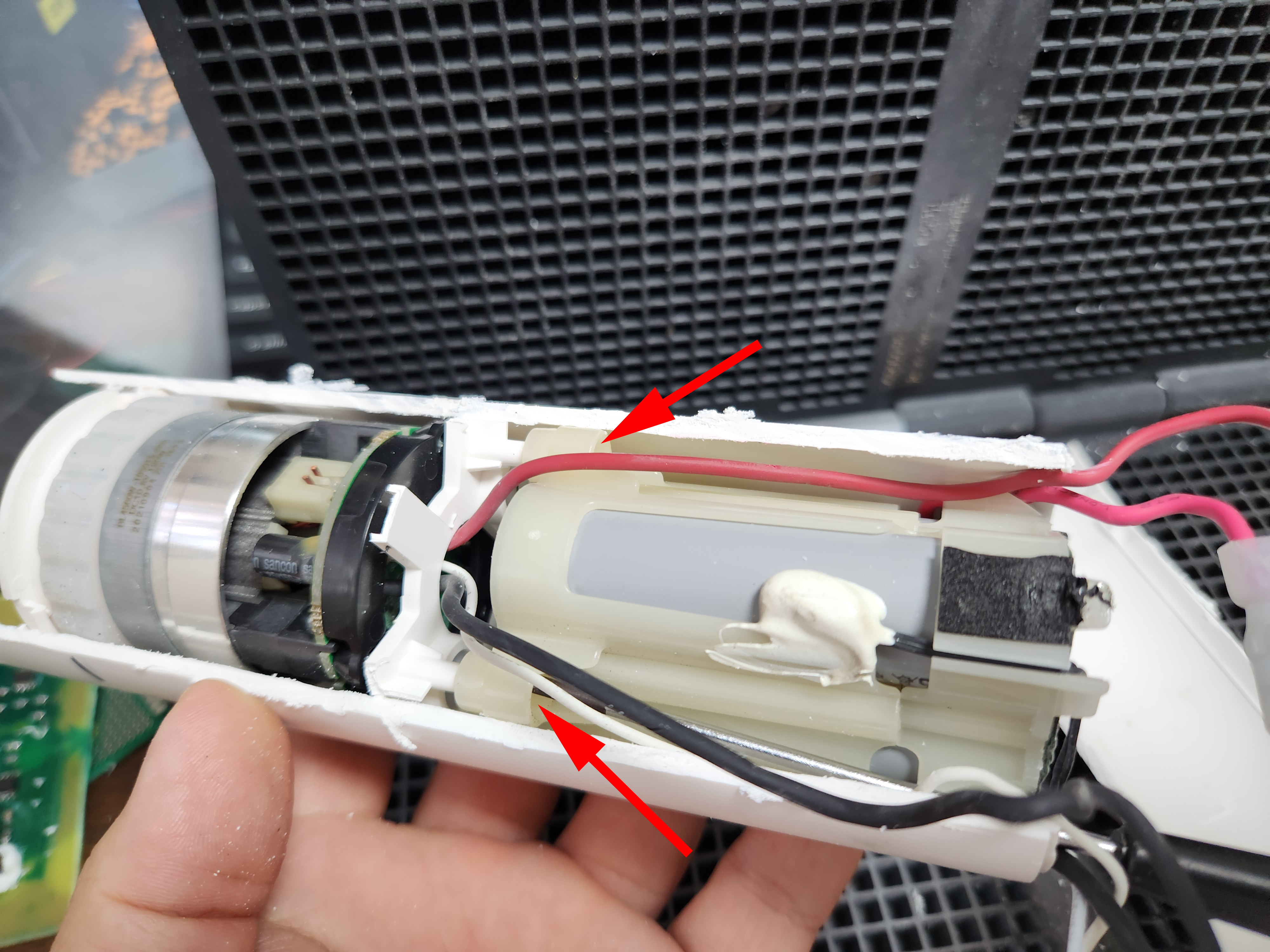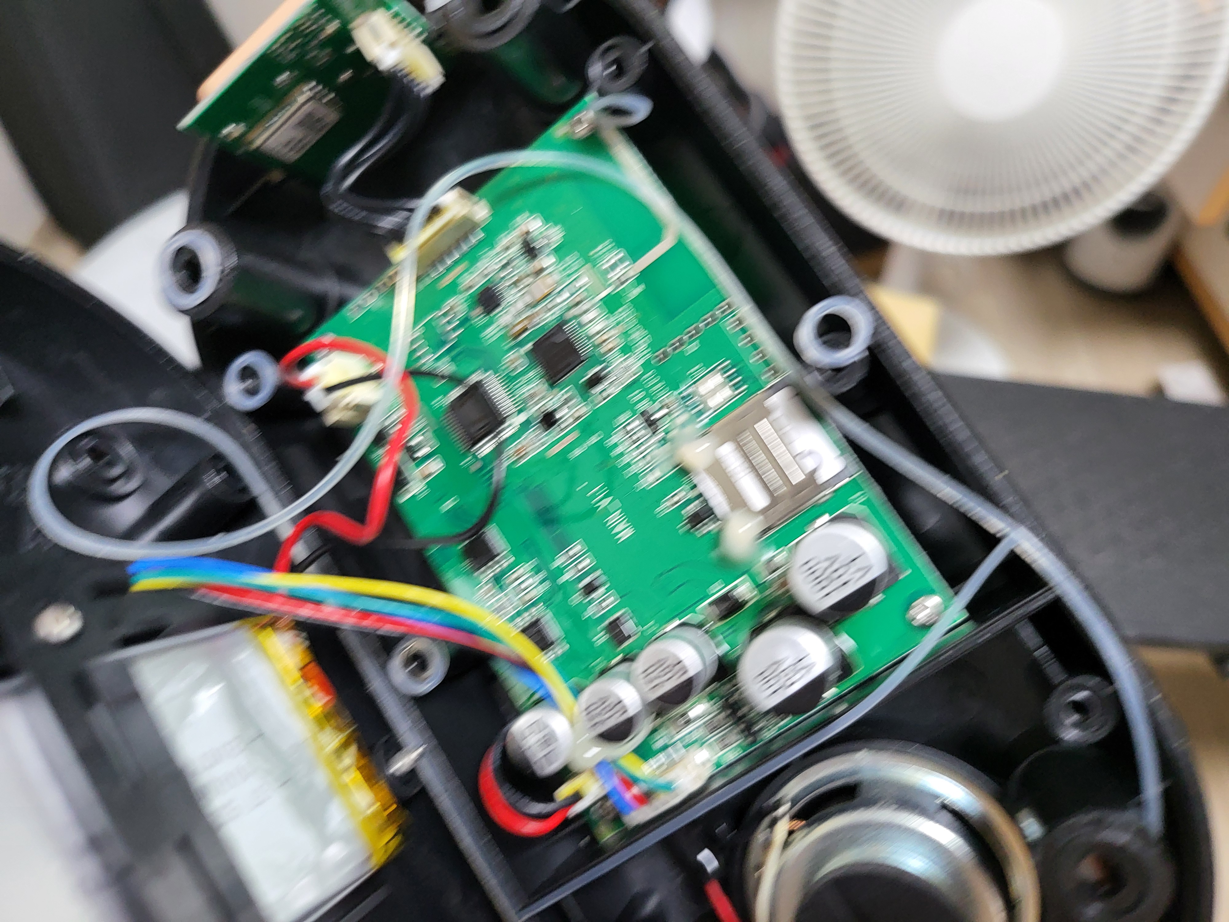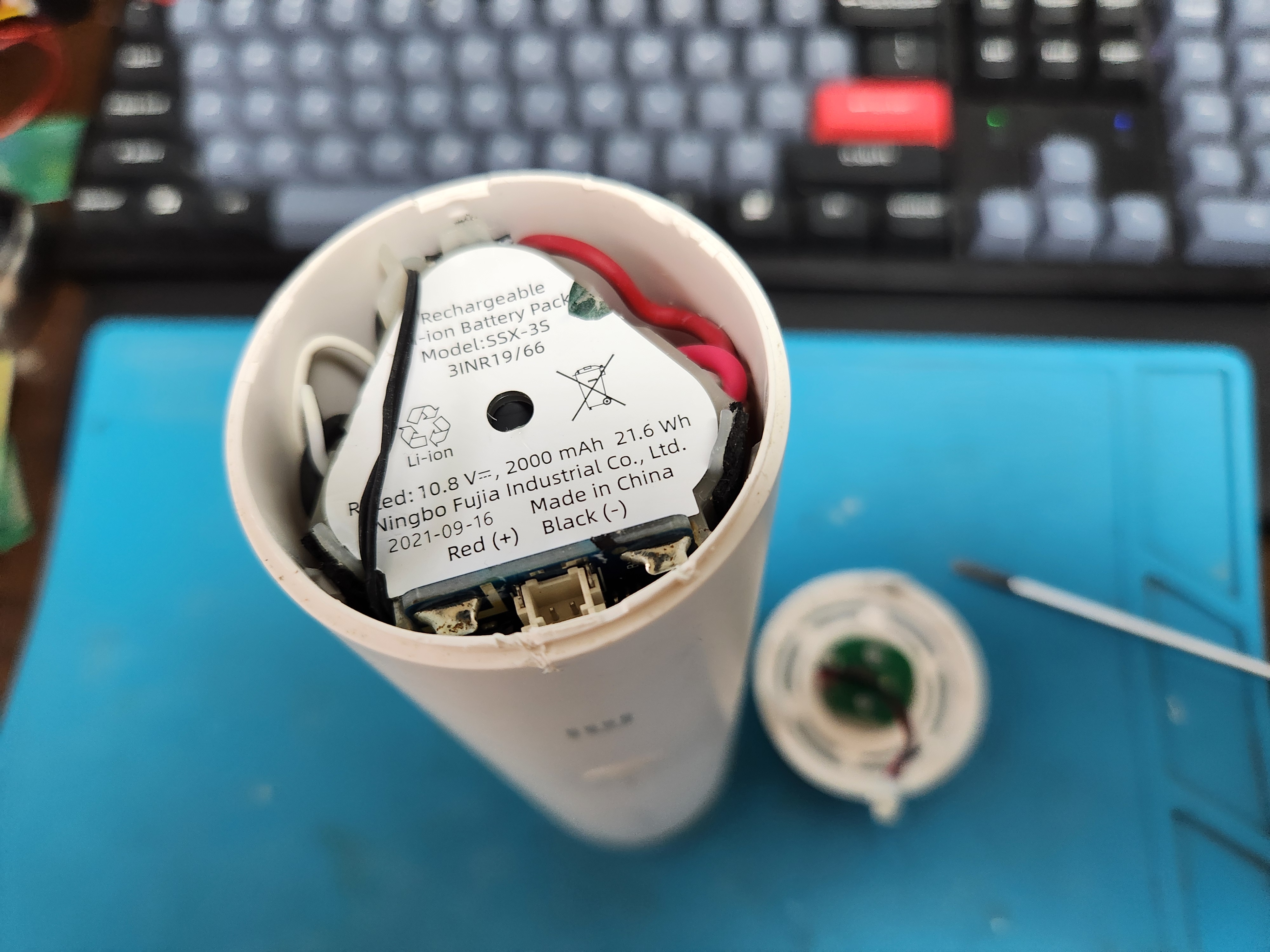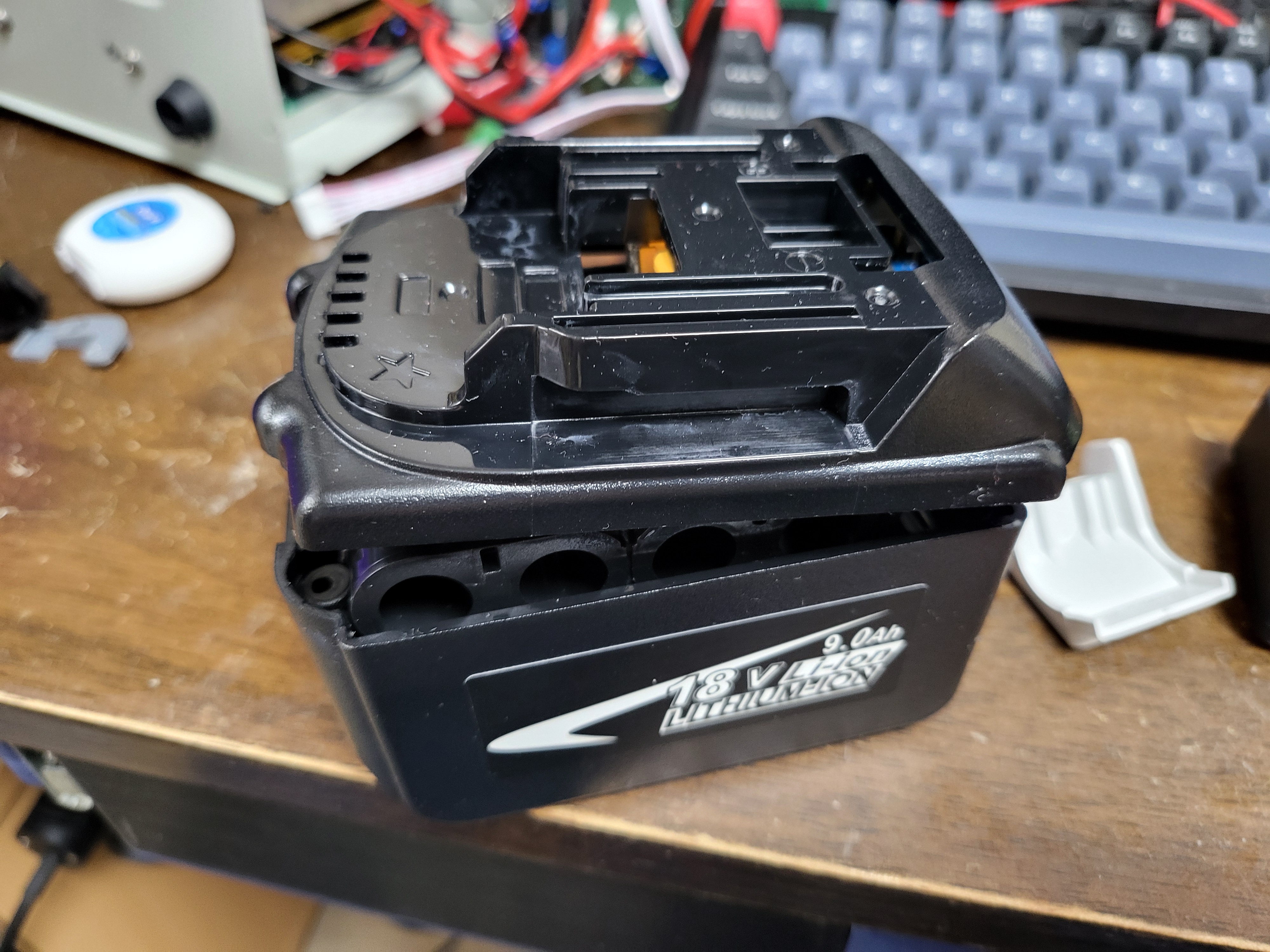 내부의 배터리와 회로에는 위아래로 플라스틱 격벽이 있습니다.