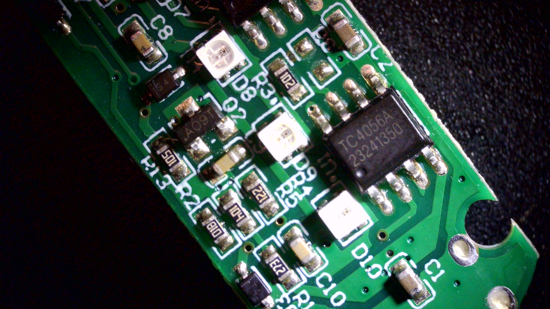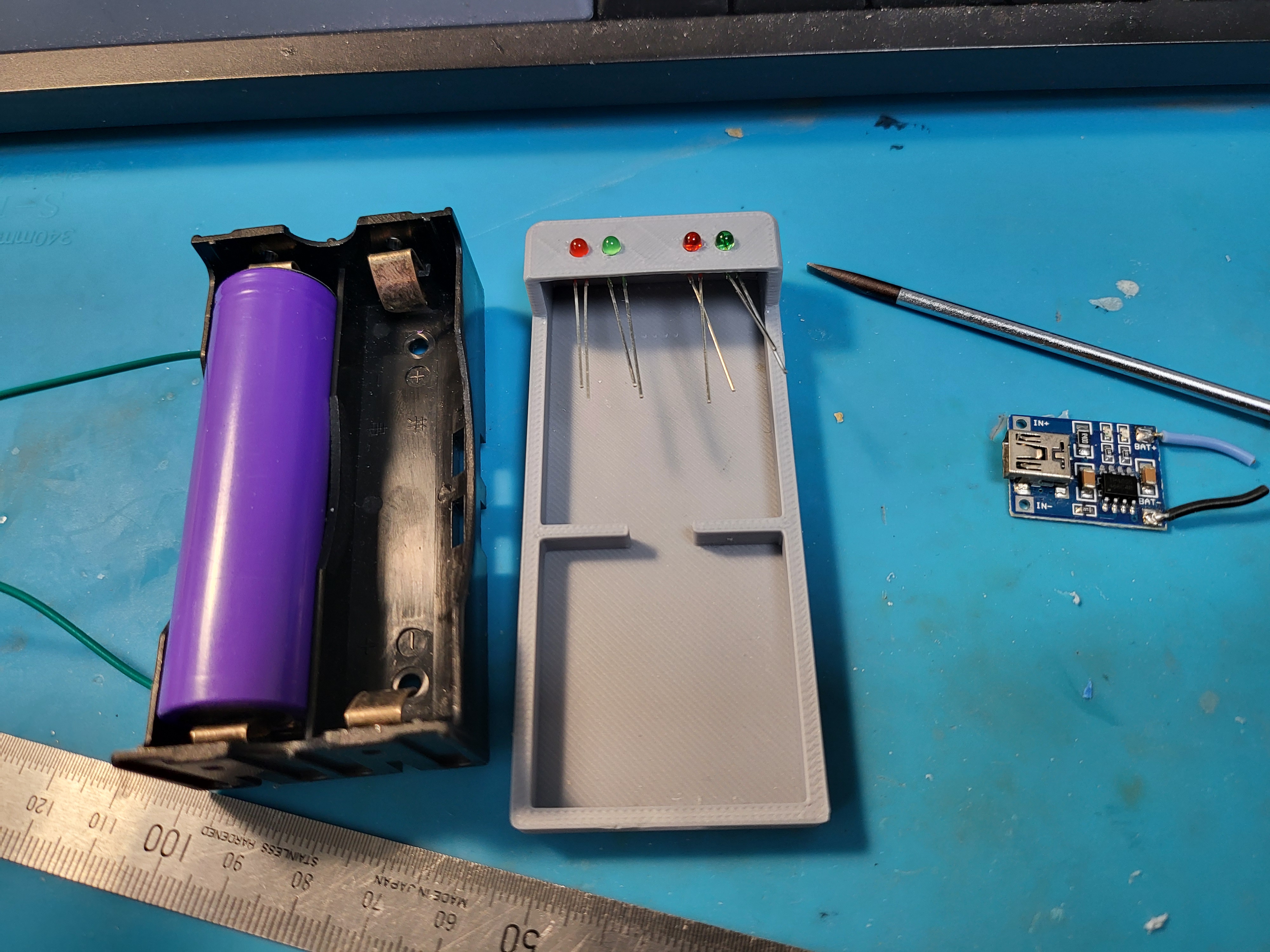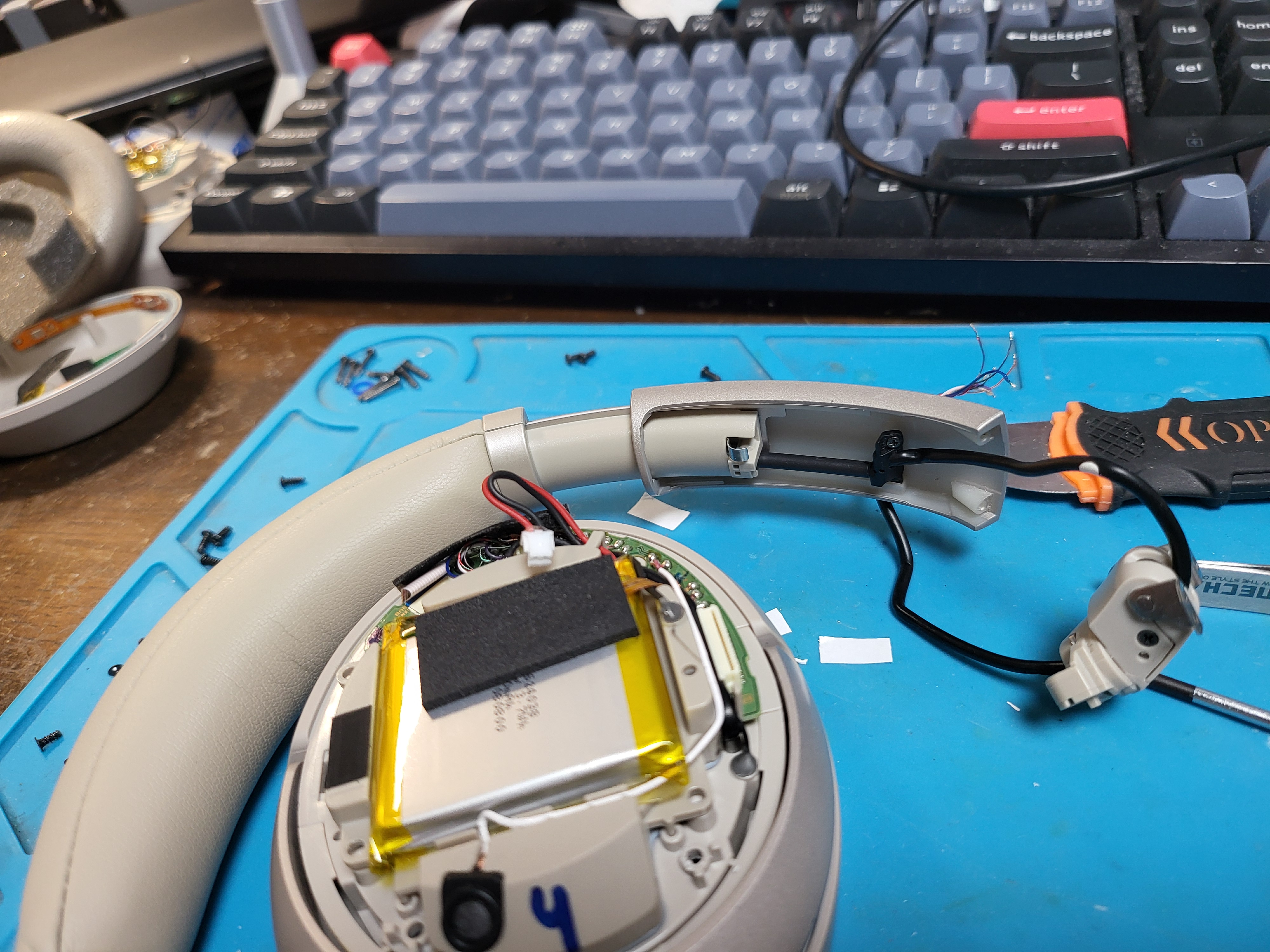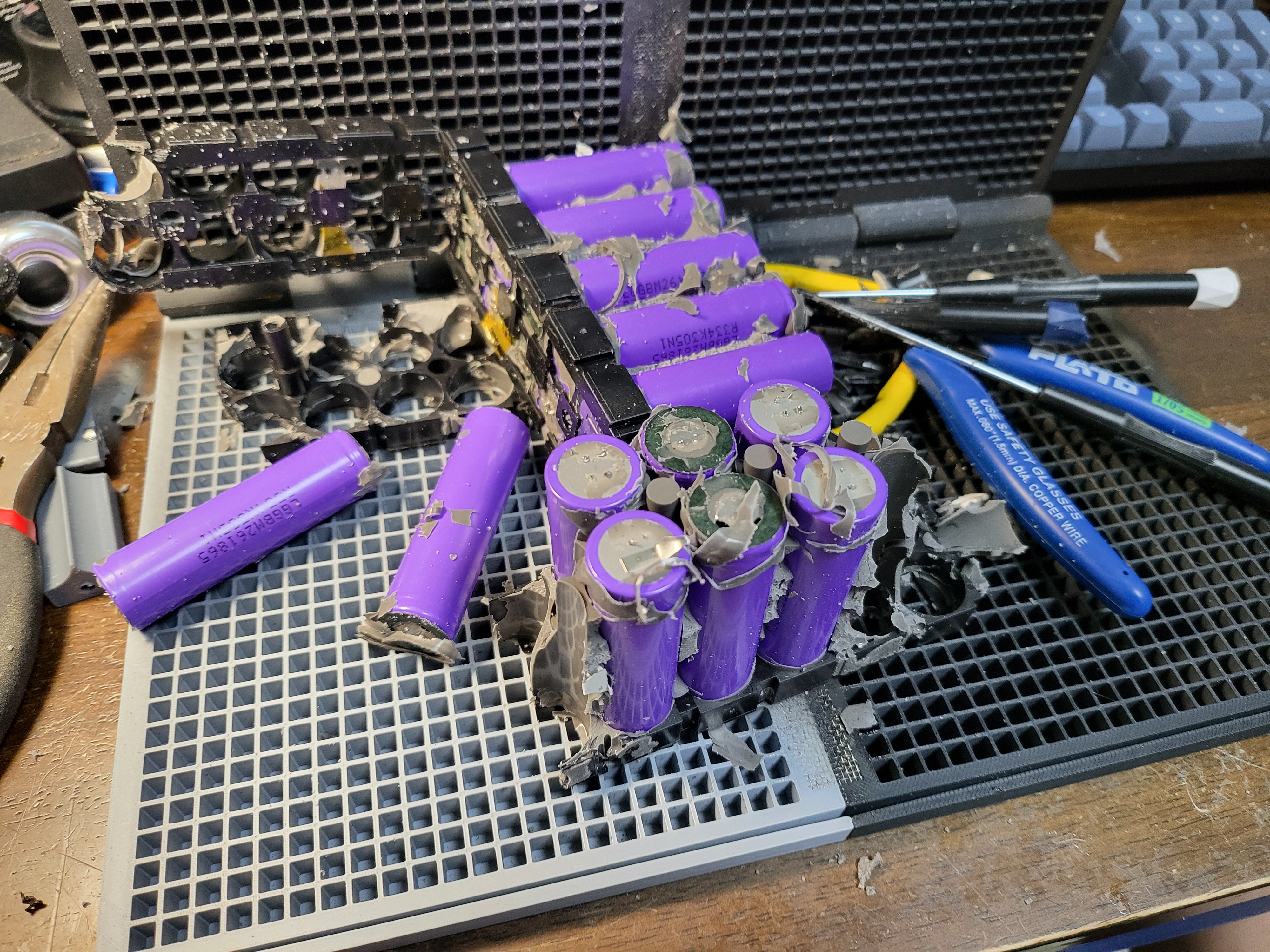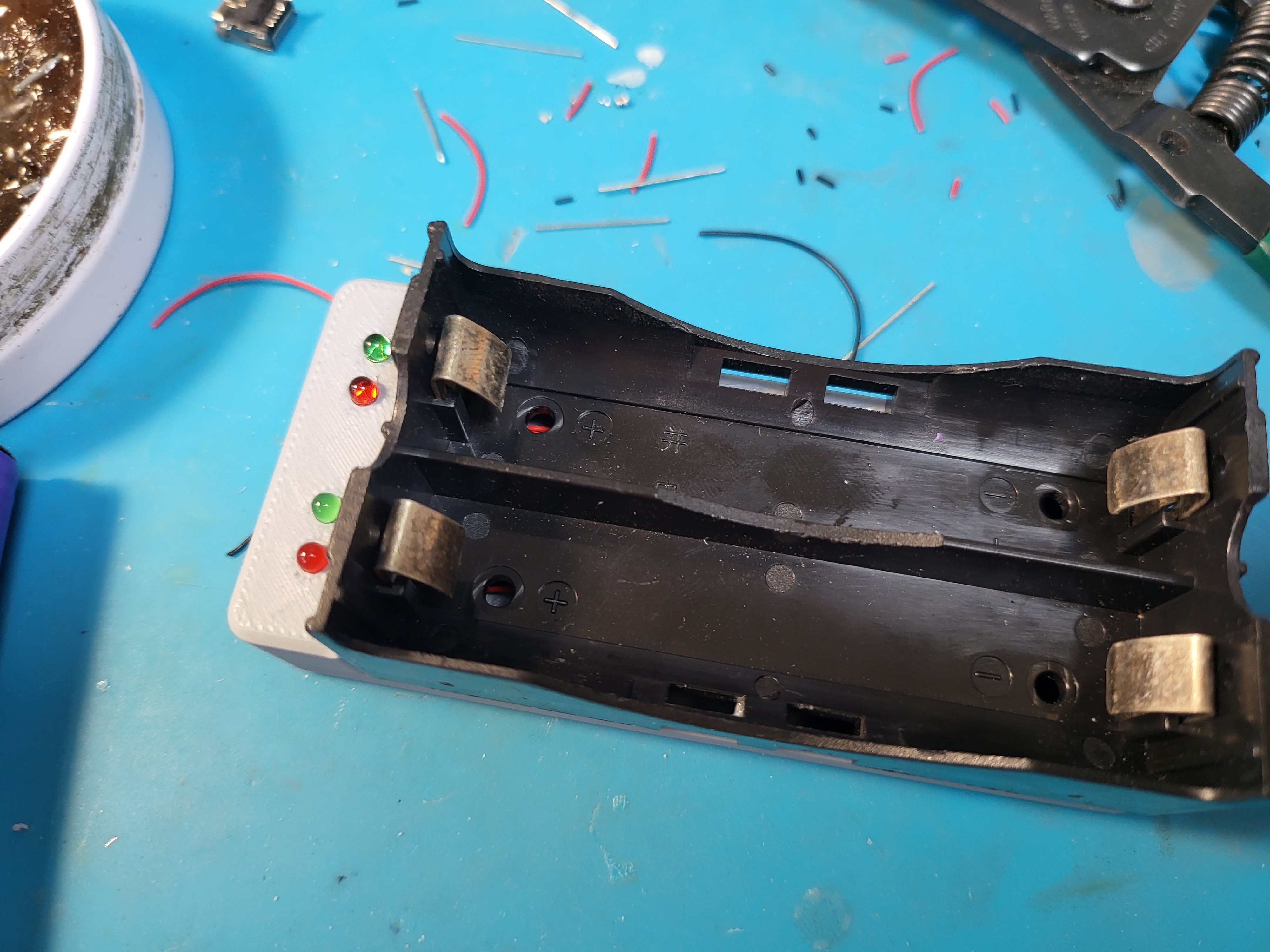 내부의 배터리와 회로에는 위아래로 플라스틱 격벽이 있습니다.