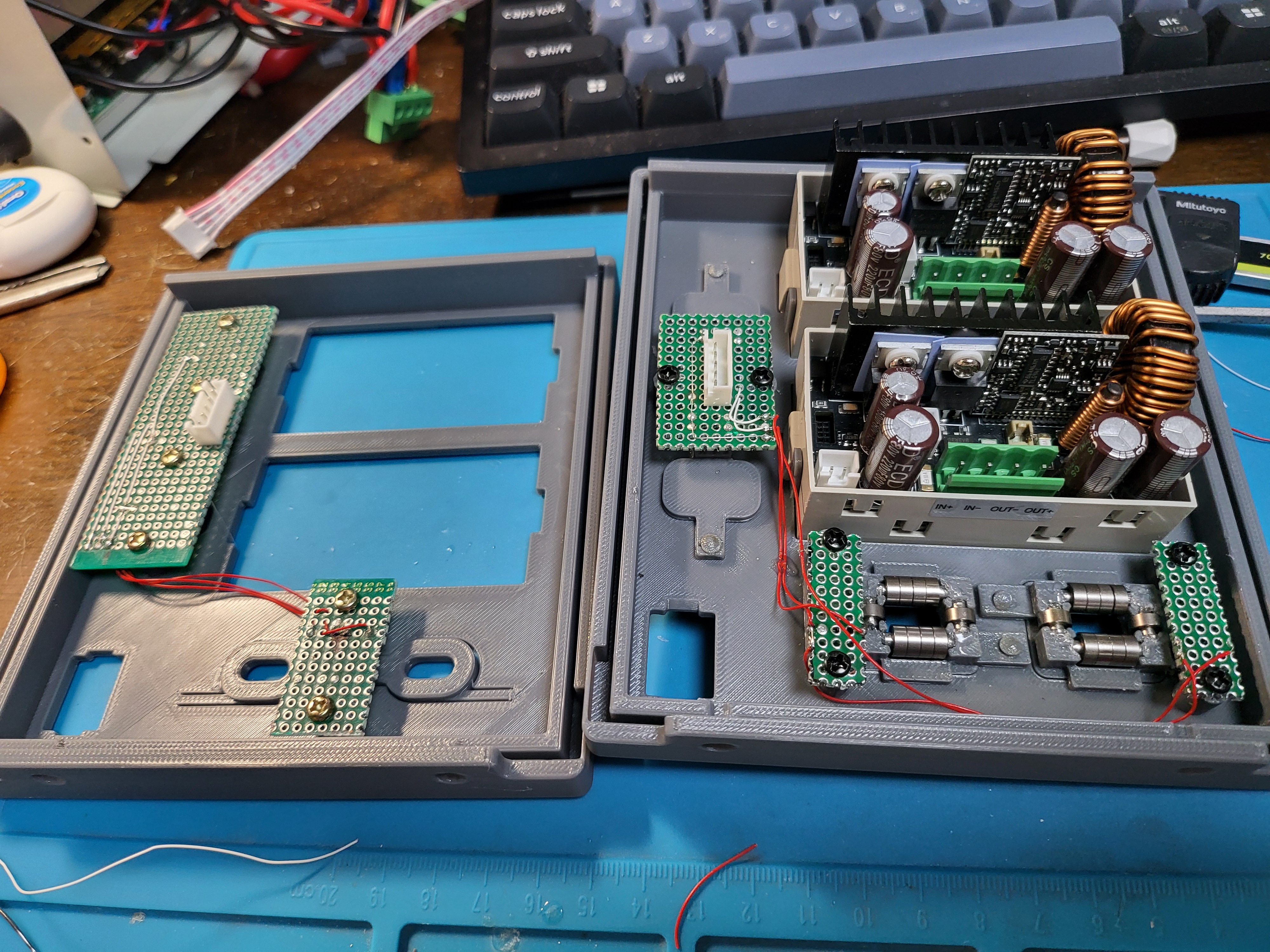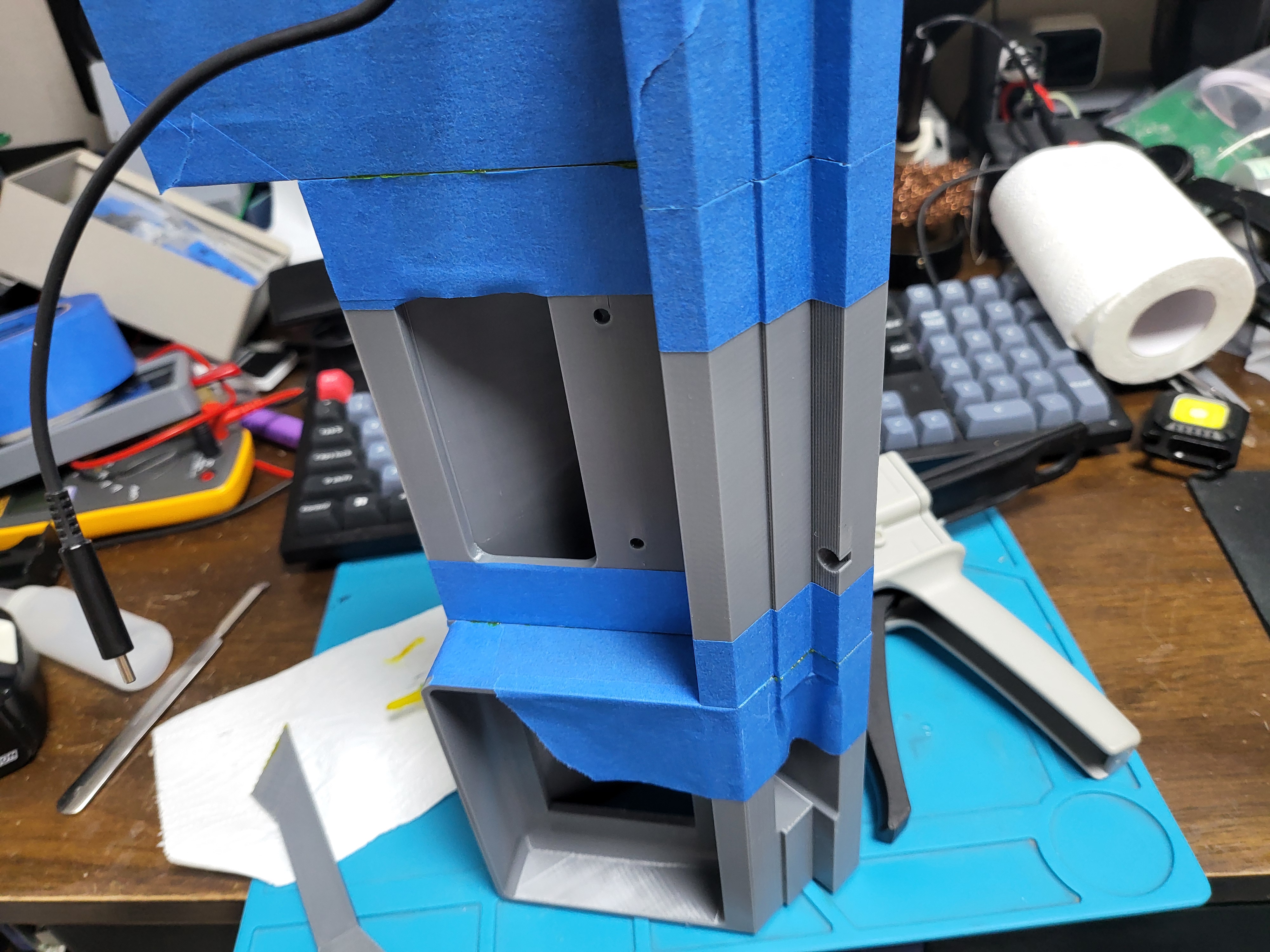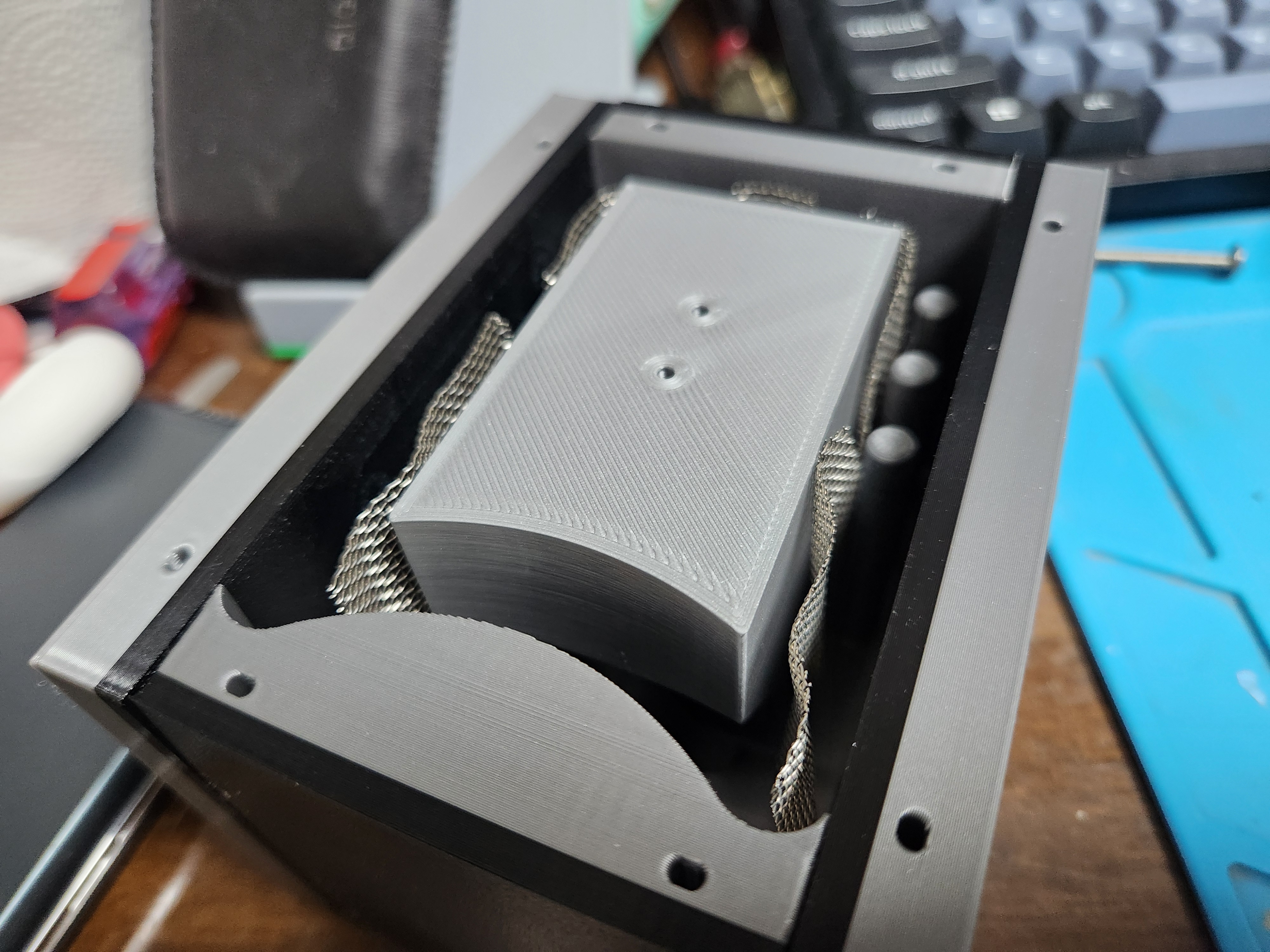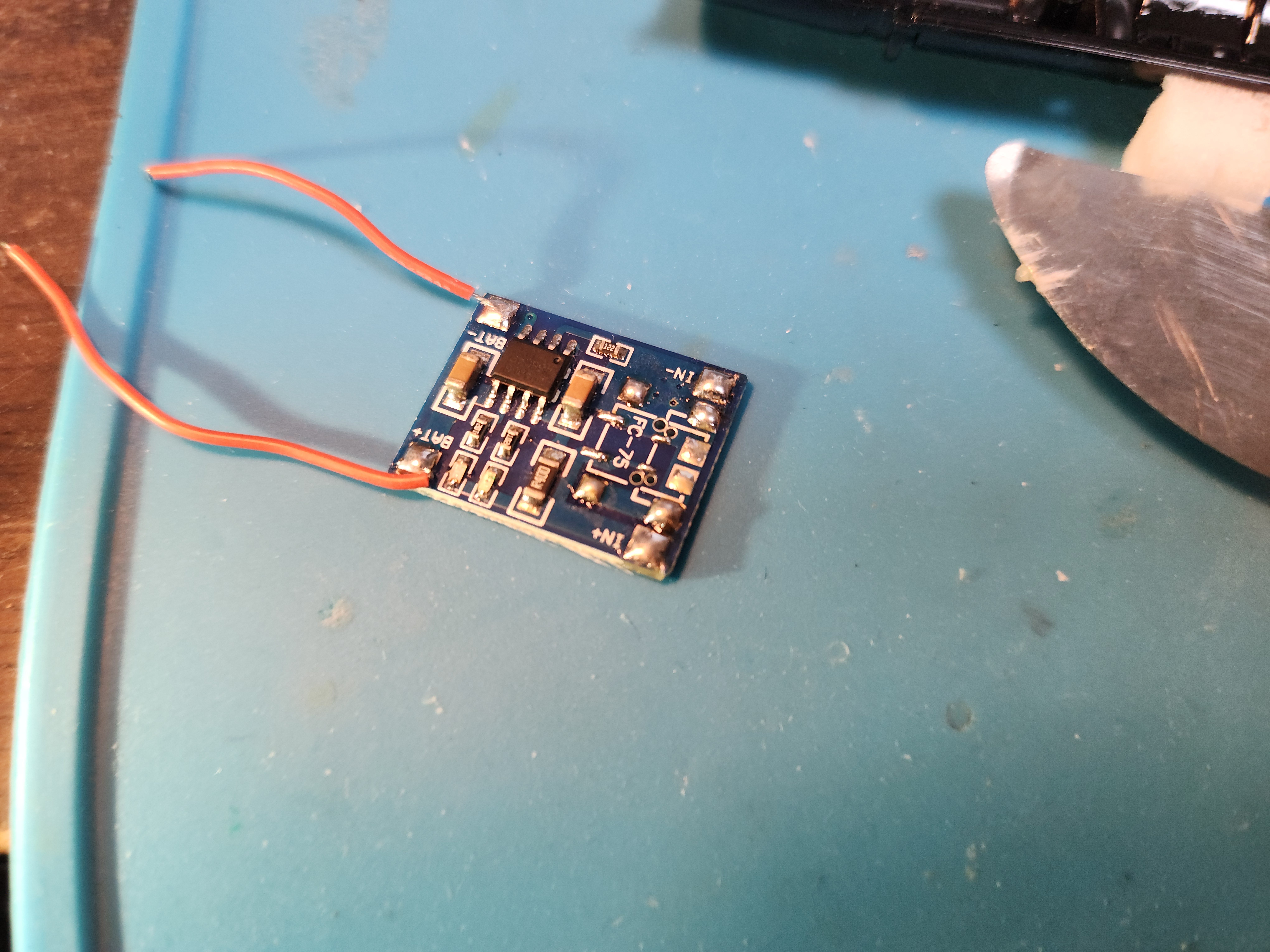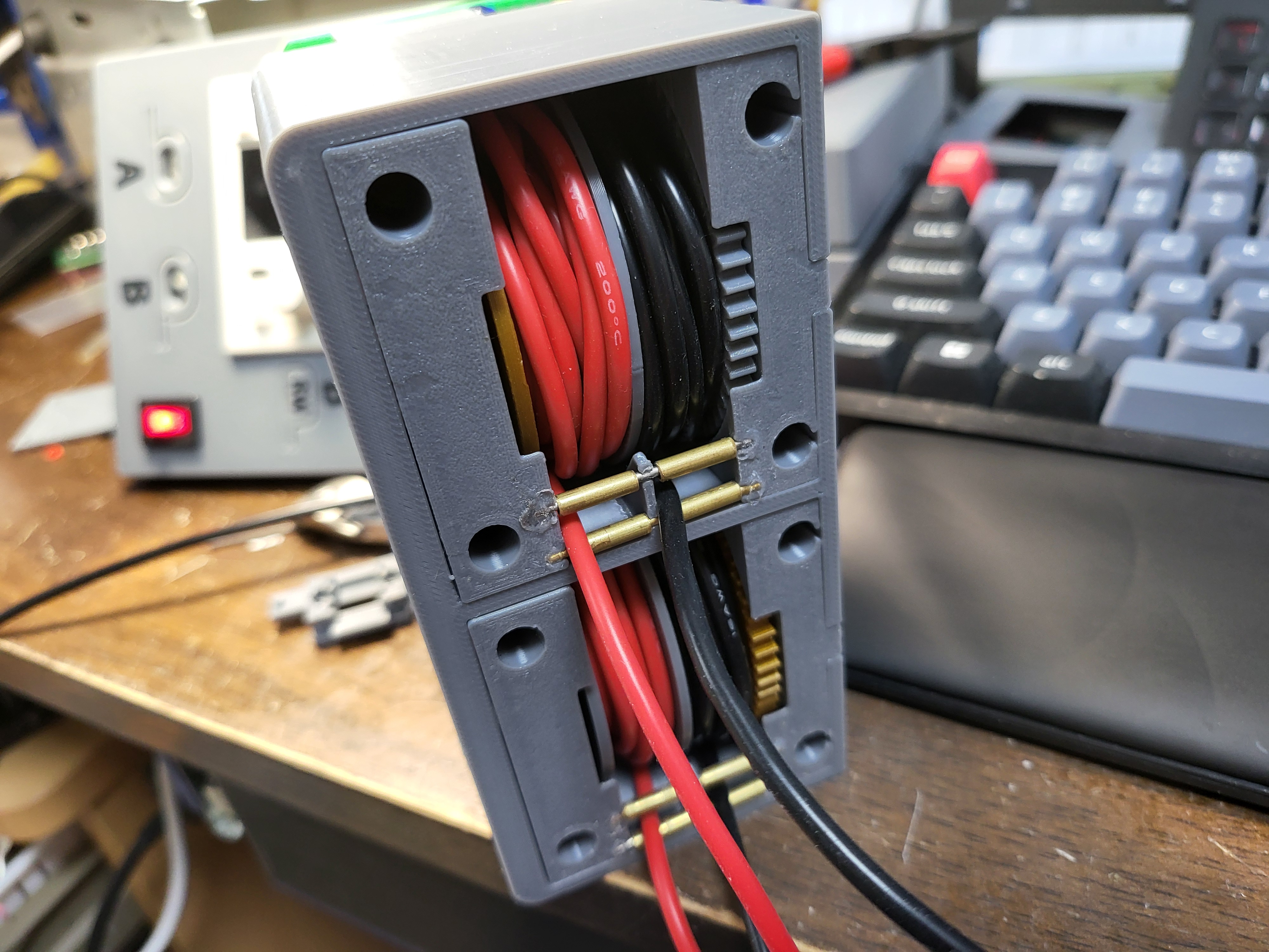 내부의 배터리와 회로에는 위아래로 플라스틱 격벽이 있습니다.