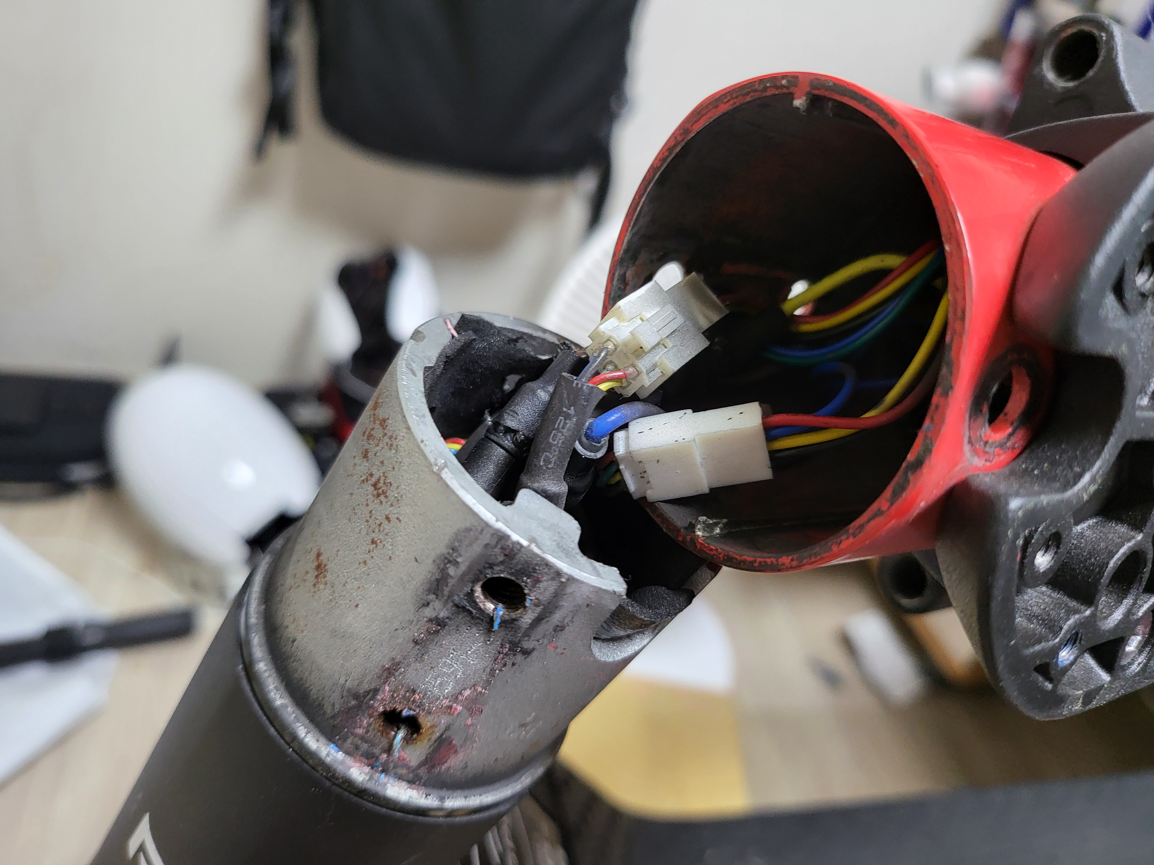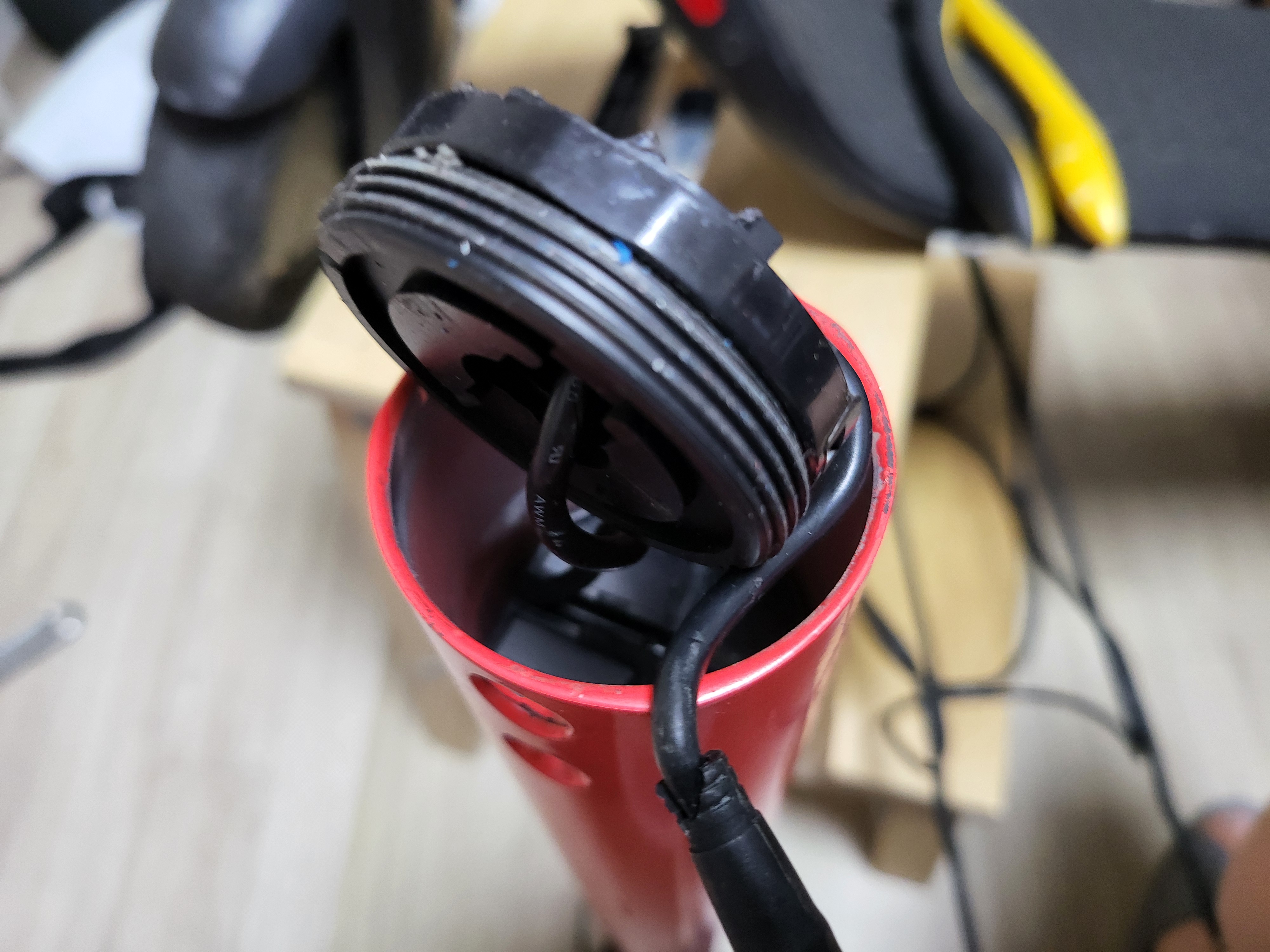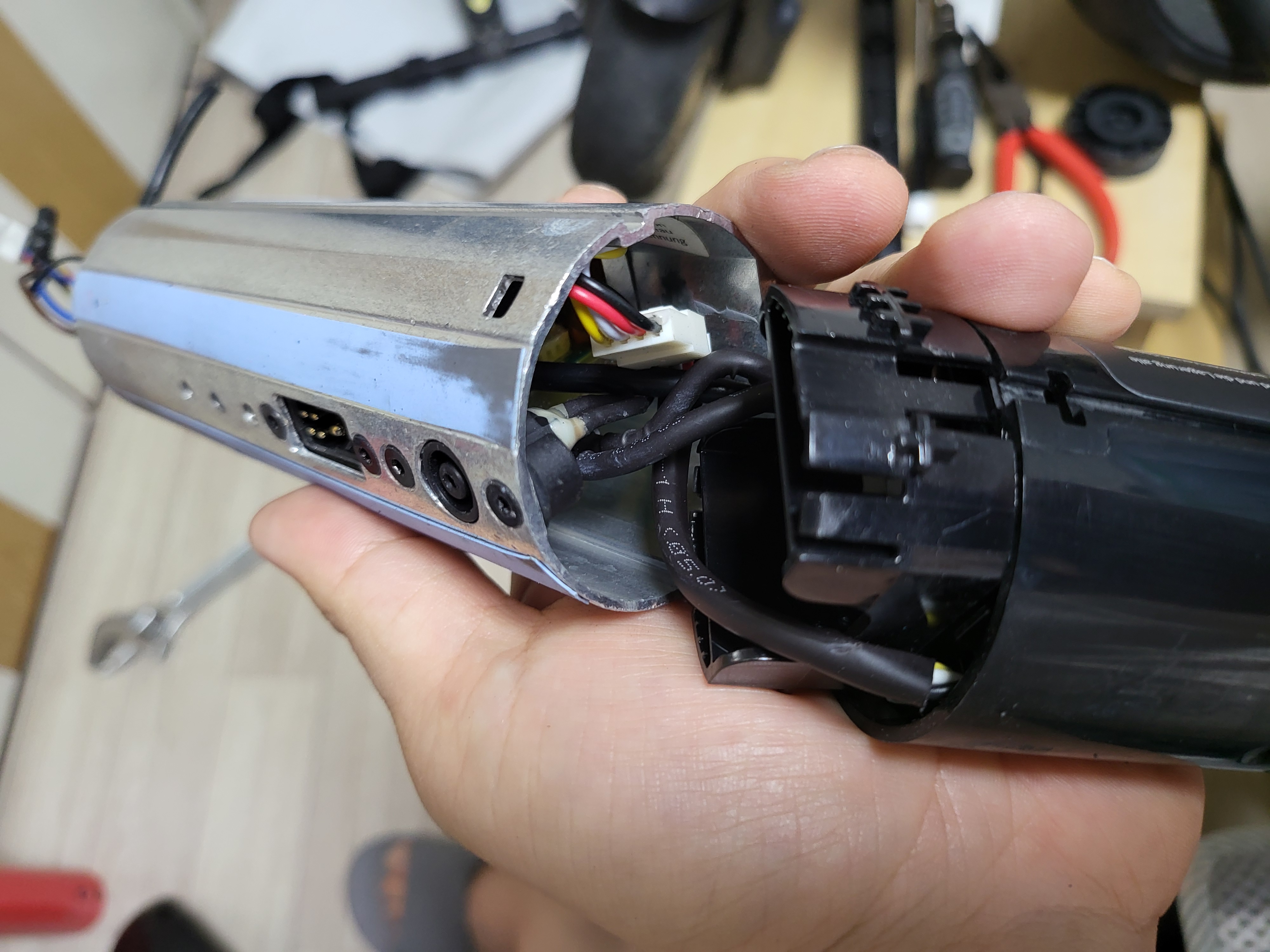 전면부의 컨트롤러를 제거합니다. 이 부품은 공용 킥보드로 쓰기 위한 회로가 들어 있습니다.