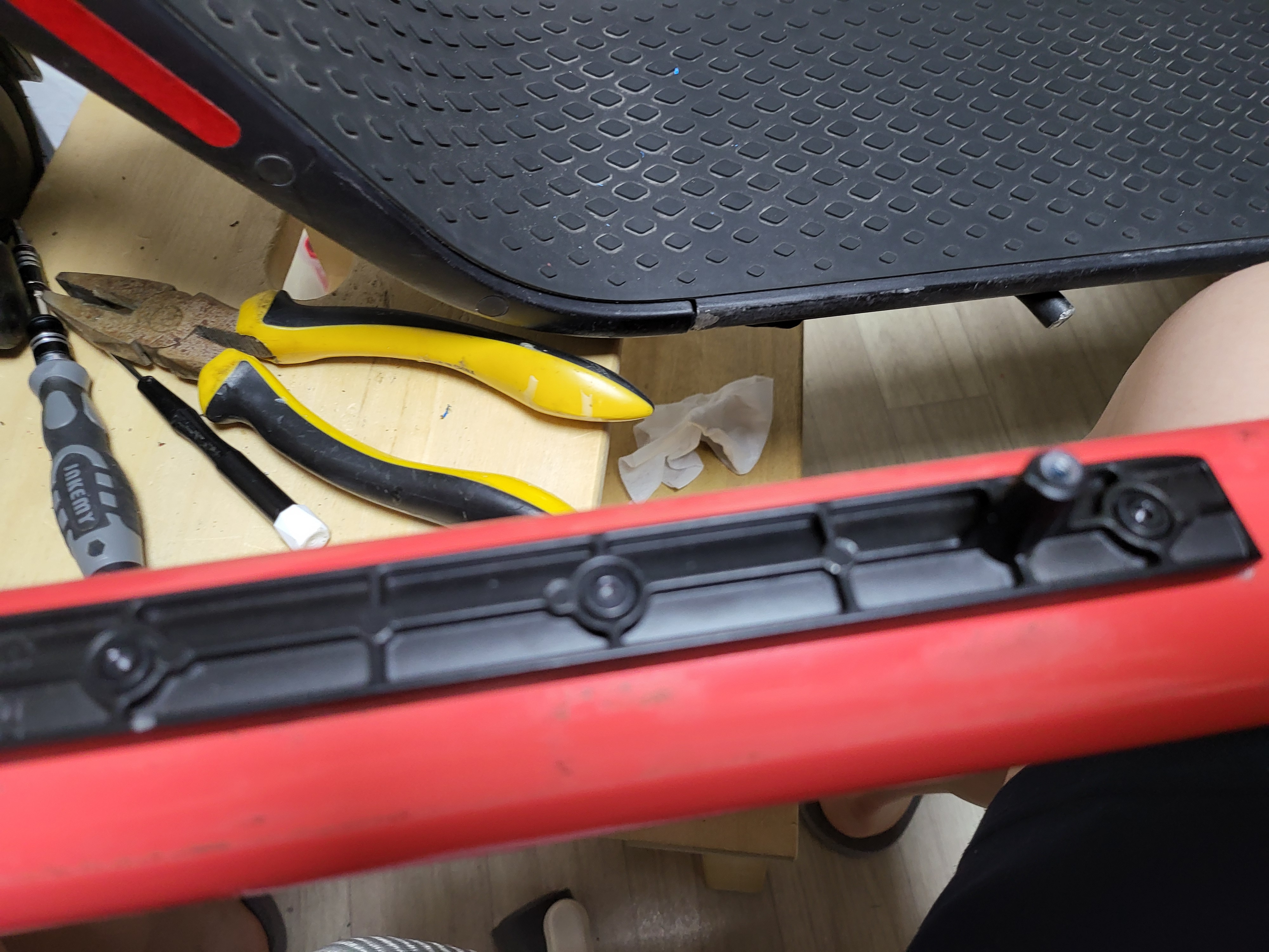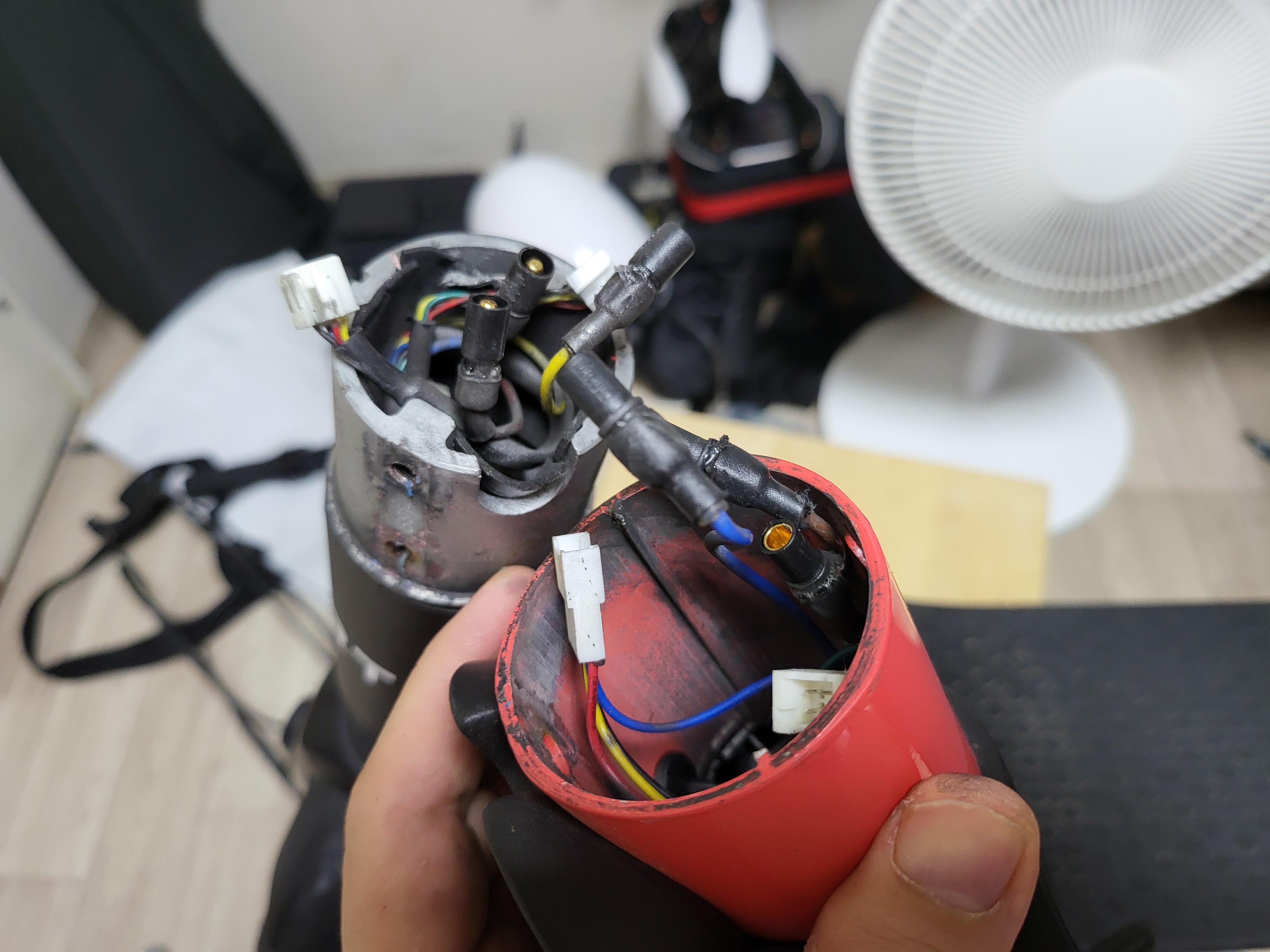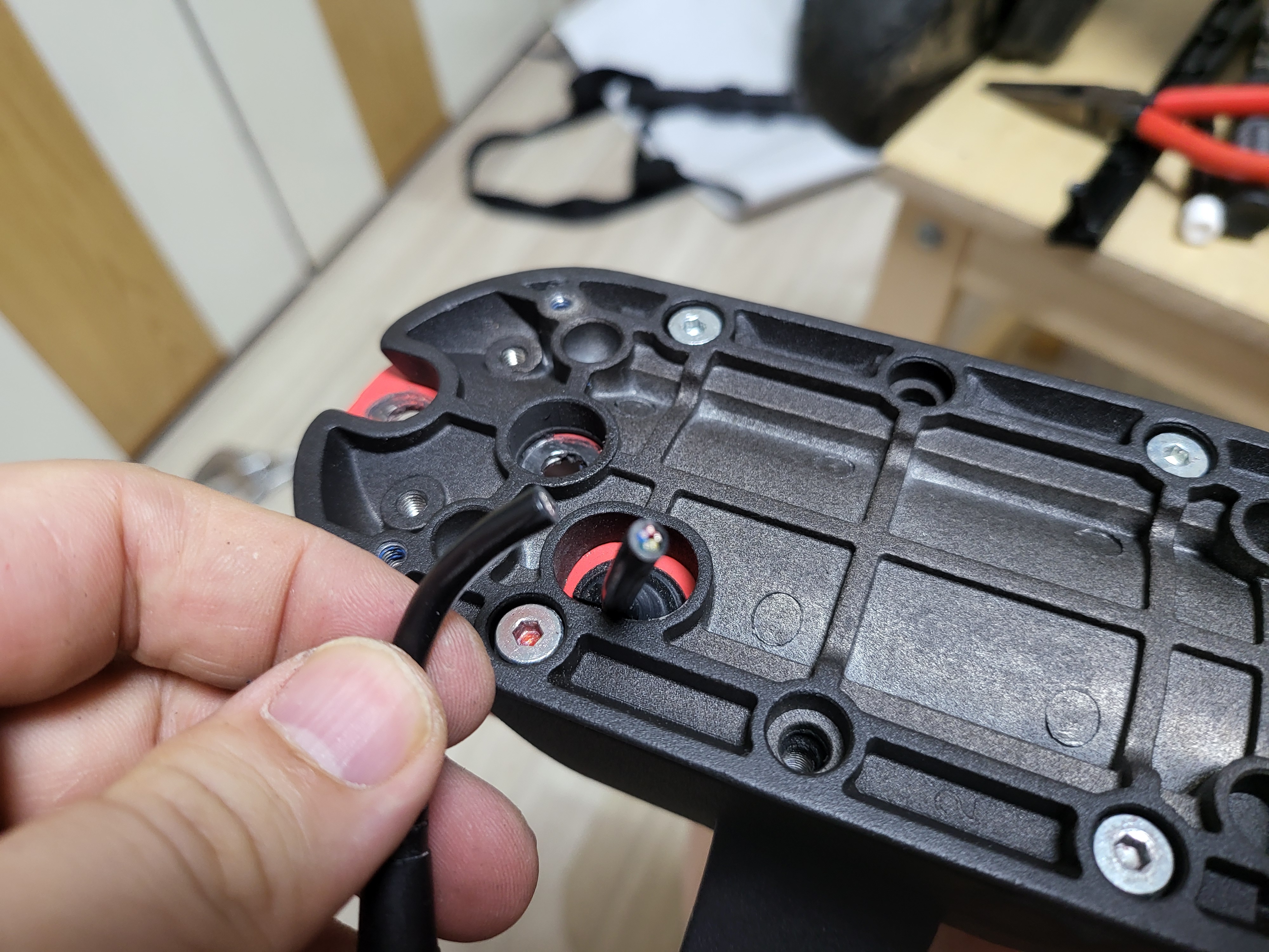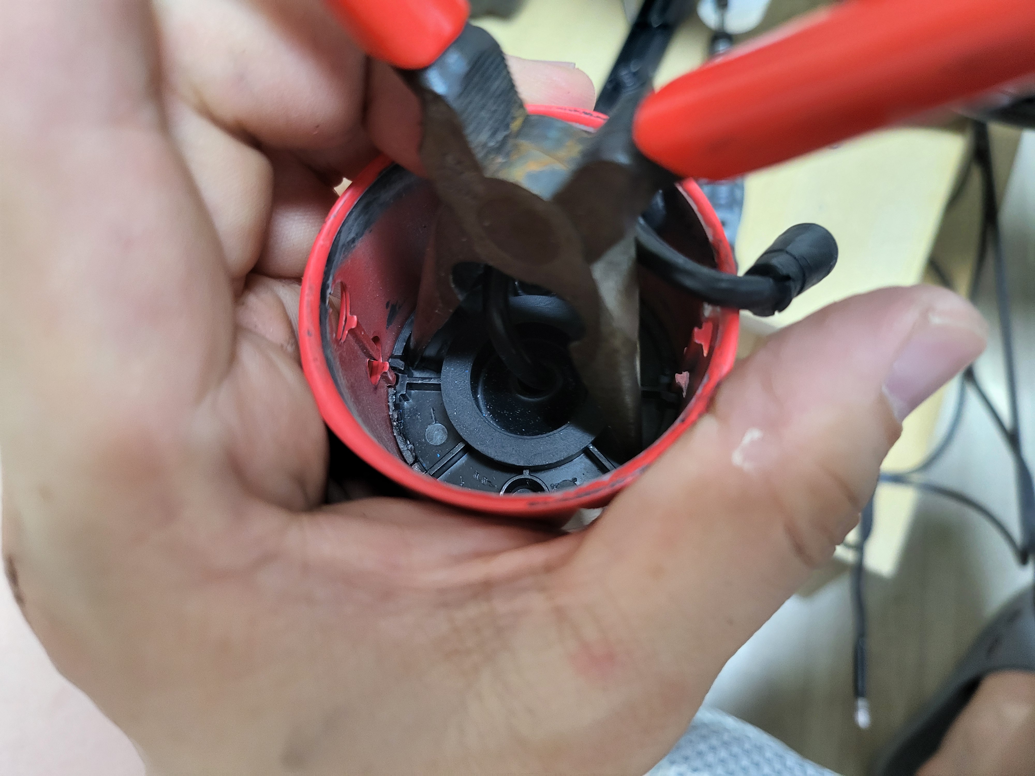 전면부의 컨트롤러를 제거합니다. 이 부품은 공용 킥보드로 쓰기 위한 회로가 들어 있습니다.