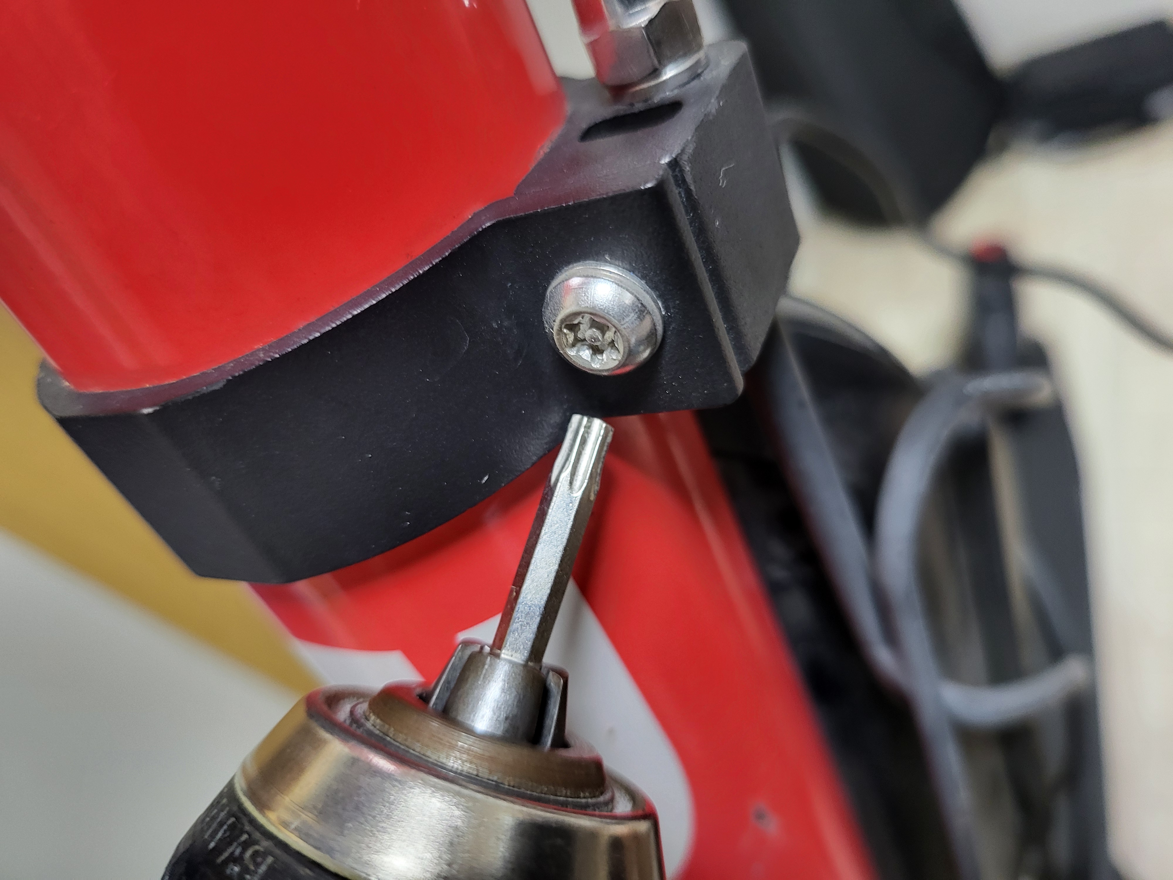 핸들 봉에 있는 볼트들을 모두 풀어줍니다.