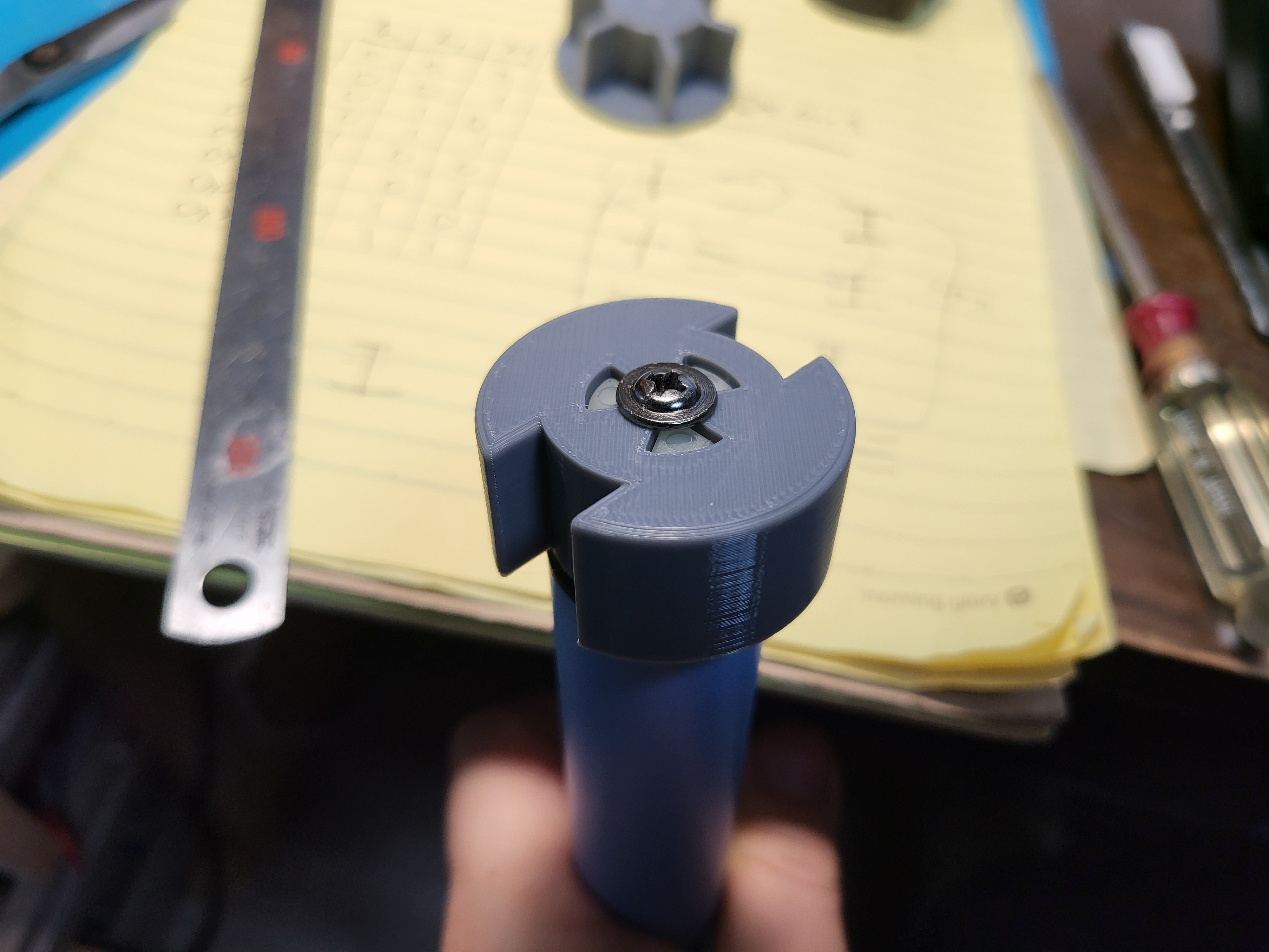 가운데에 핀이 튀어나와 있는 보안형 별나사입니다. 공구도 당연히 구멍이 뚫린 것이 필요합니다.