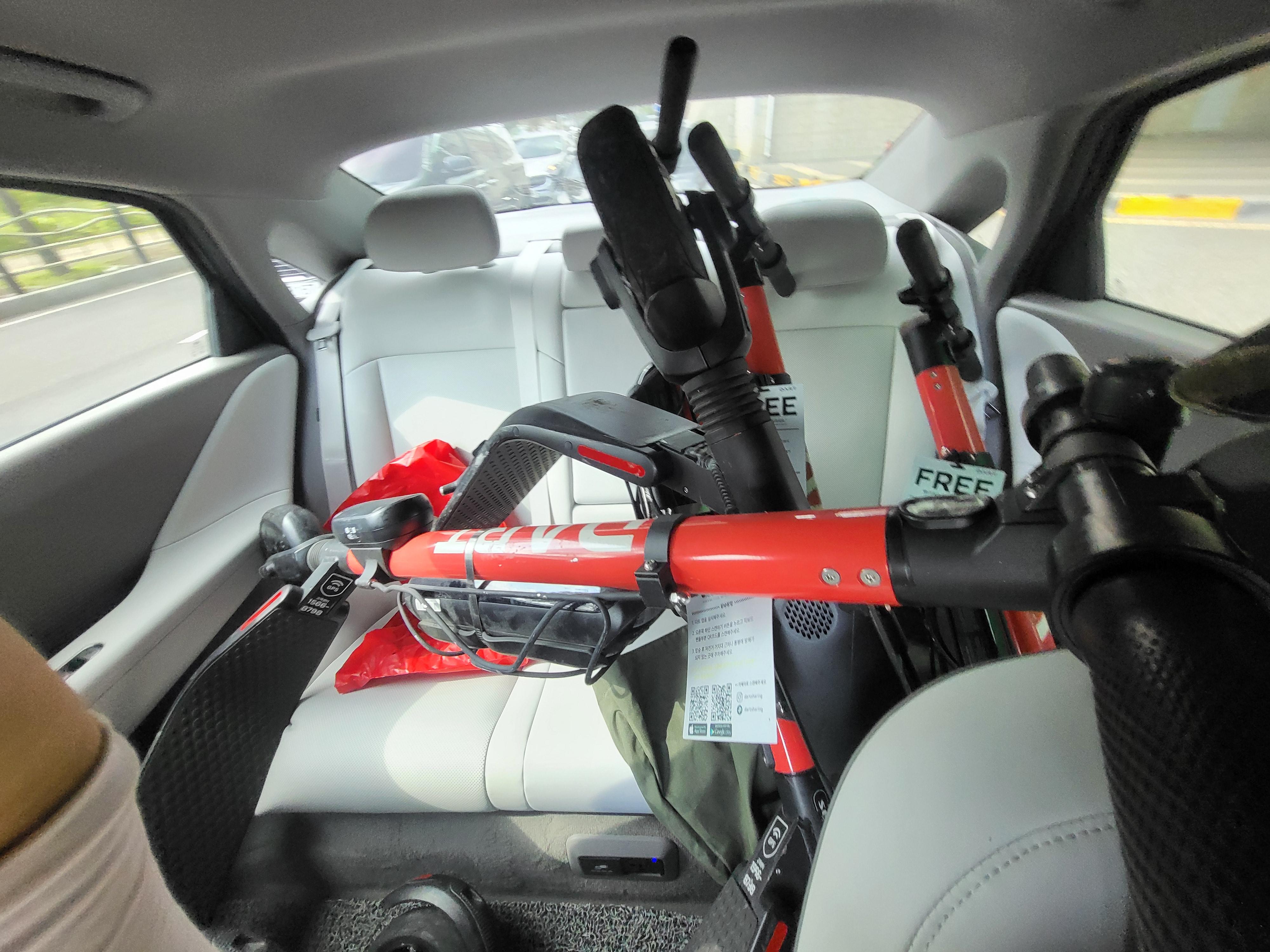 공유킥보드라 접히지 않는 모델이라서 트렁크에 실을 각이 안 나오더군요.